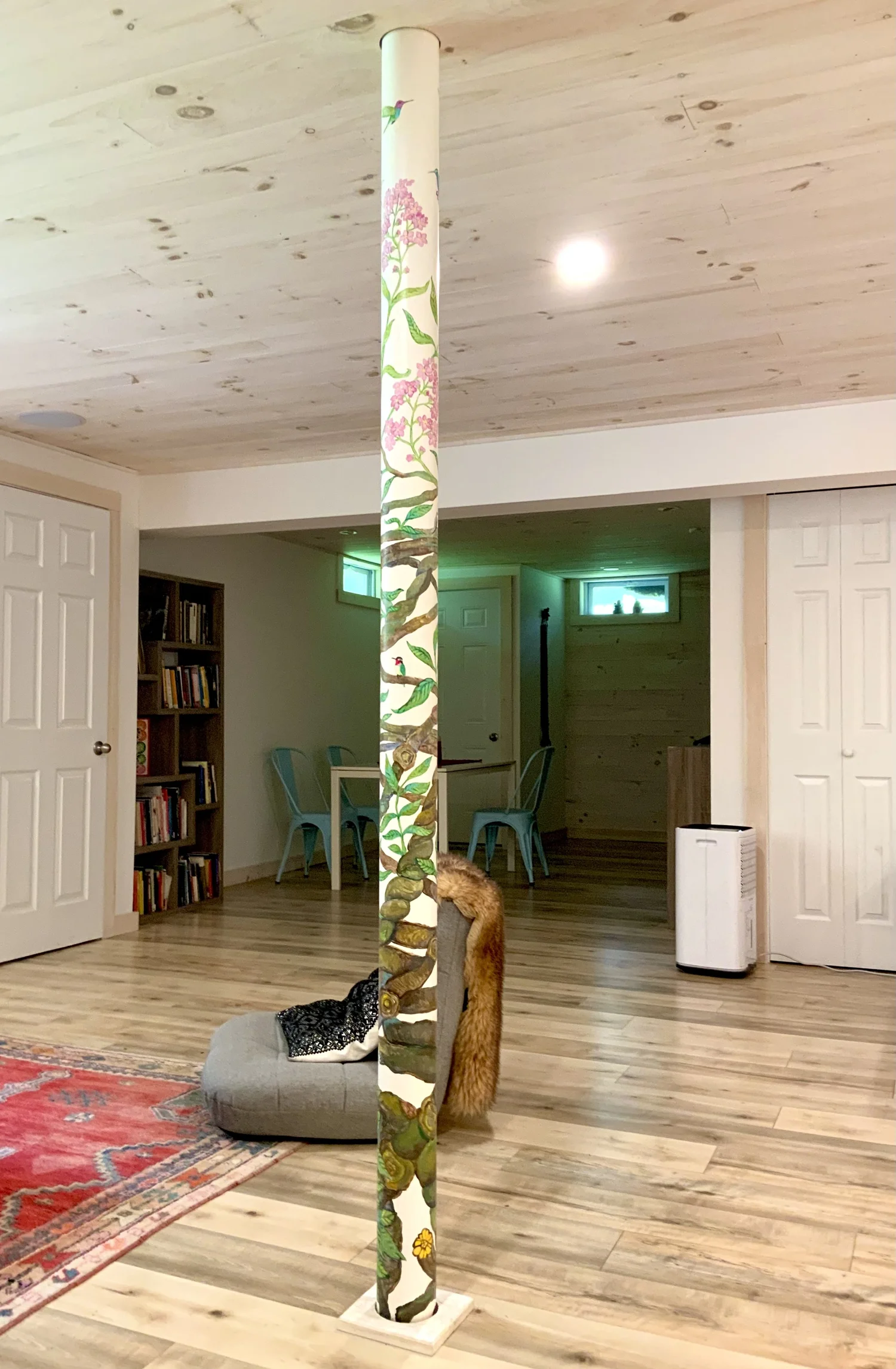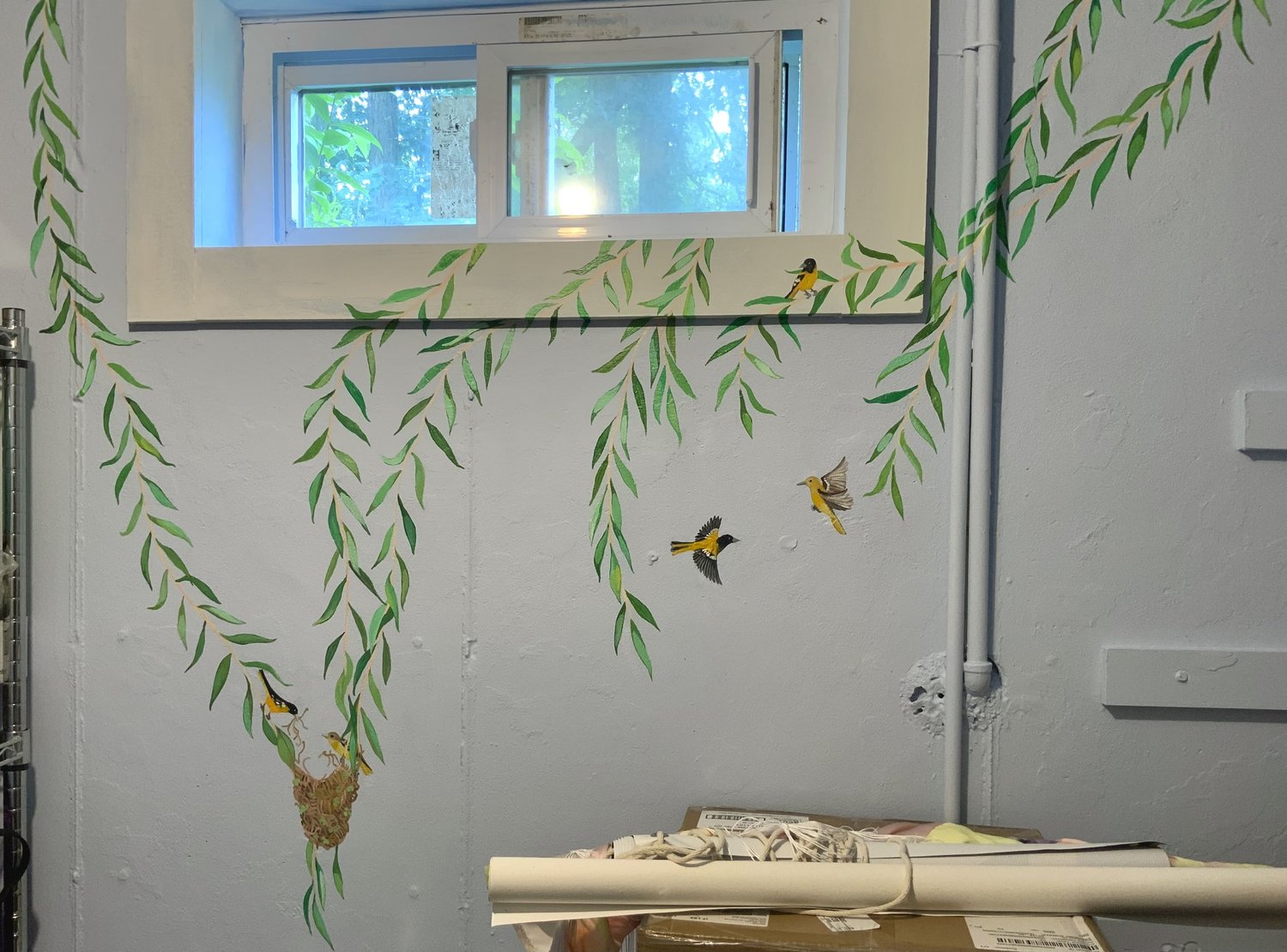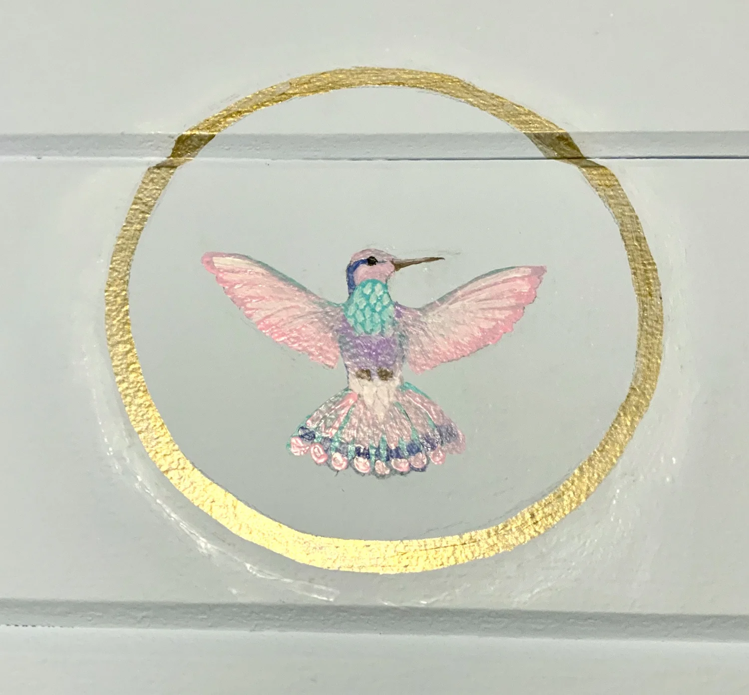 Blooming vines, flowers, bees, orioles, and hummingbirds
