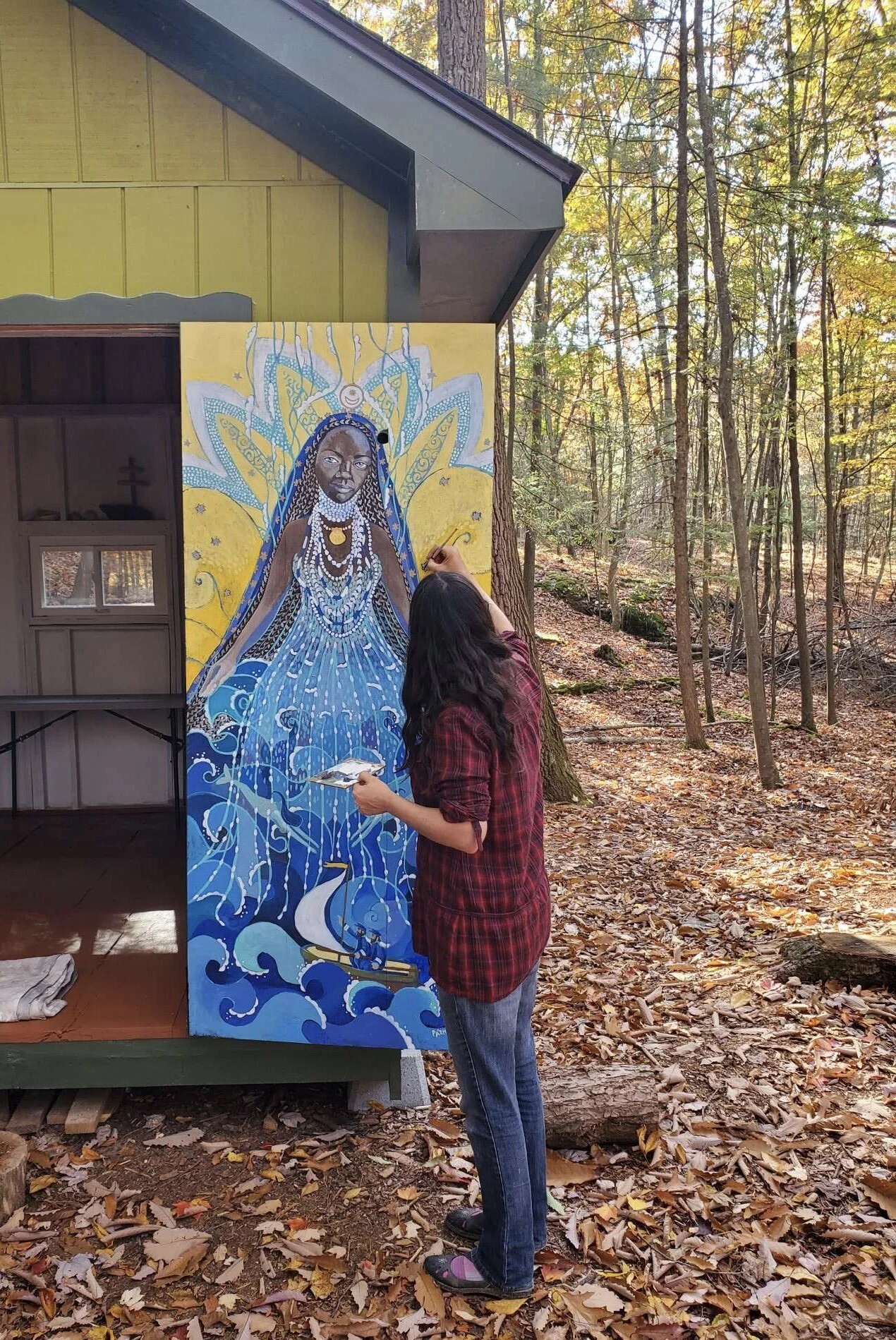 Murals on shed’s doors - Preto Velhos &  Iemanja